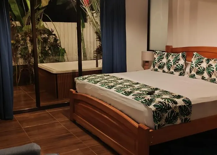 Cet appartement Tucan Bungalow & Jacuzzi La Fortuna de 45 m² est situé à moins de 3 km des Chutes La Fortuna et à quelques pas de Canoa Aventura. Les voyageurs de loisirs profiteront d'une baignoire chaude, ainsi que d'équipements de luxe tels qu'un bain chaud proposés sur place.